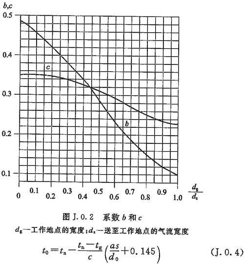 J.0.4 送風口的出口溫度應按下式計算。當送冷風時,計算的送風口出口溫度較低時,可選用較大尺寸的送風口重新確定相關參數。