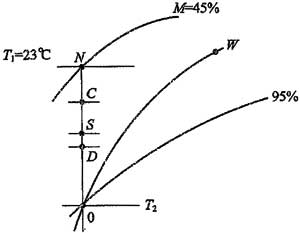 圖3 在焓濕圖上表示的夏季空氣處理過程