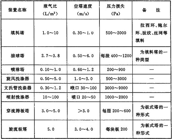 4、5 在可能的條件下,應盡量采用工廠的廢液(如廢酸、廢堿液)作為吸收劑。常用的吸收劑及其性能如下。