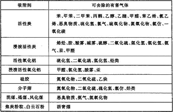 表6 各種吸附劑可去除的有害氣體
